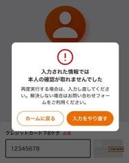 例:「カード番号が変更になった」、「名字だけ登録されている」、「ご家族の名で登録されている」、「濁点の有り無し」、「カナの登録違い(ンとシ)、(チとケ)、(エとユ)、(アとマ)、(ノとン)」等