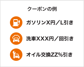 給油の値引き、洗車、カーメンテが割引になるクーポンがあります。